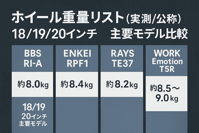 【ホイール重量比較】18/19/20インチ人気モデル